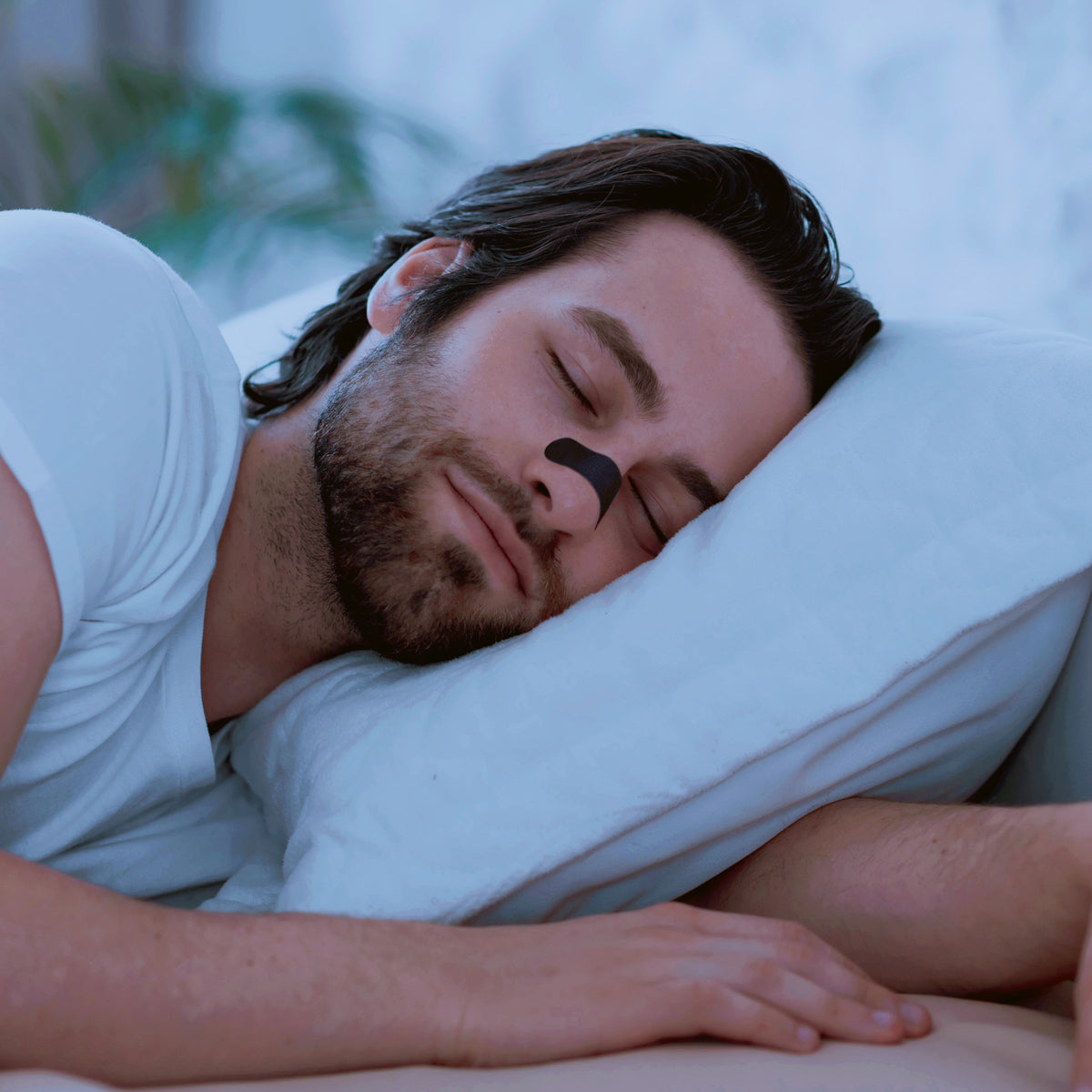 Las tiras Sleeptime se aplican en el exterior de la nariz. Su diseño flexible abre las fosas nasales, lo que mejora el flujo de aire, reduce los ronquidos y te permite dormir mejor.